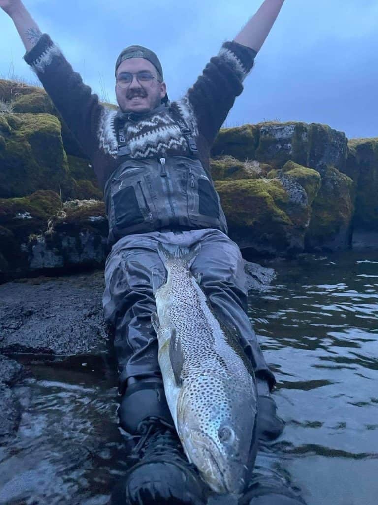 85cm sjóbirtingur sem Bjarki Bóasson náði í Ásgarði