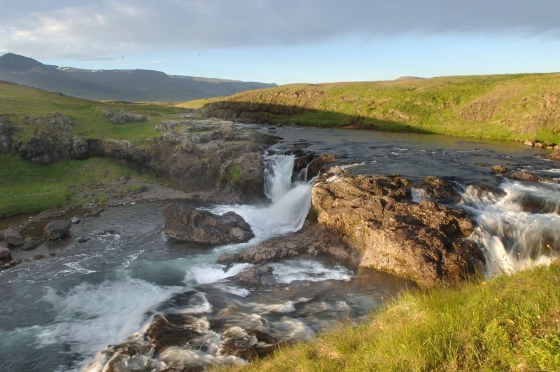 „Well, John. It’s now or never. Right?“ Minn maður Charlie kominn í vöðlurnar, búinn með morgunkaffið, tilbúinn. Laxfoss beið. Kannski óþarflega fallegur morgunn, sól þegar komin hátt á himin og hækkandi hiti. Ég fór lengri leiðina með Charlie niður í Laxfoss til að styggja ekki. Tókum enga sénsa. Læddumst upp meðfram klettinum fyrir neðan foss, tókum okkur stöðu við hvítfyssið fyrir neðan, í mittisdjúpu vatni með klettavegginn fyrir aftan okkur. Komnir í kjöraðstöðu og dauðafæri. En um leið og ég hnýtti það öruggasta í boxinu undir hjá Charlie, Green Butt nr. 12, fékk ég einhverja óútskýrða en óþægilega tilfinningu, eins og fylgst væri með okkur.